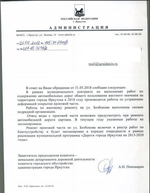 айГражданинОтправлено 30.05.2018: "Администрация города Иркутска"