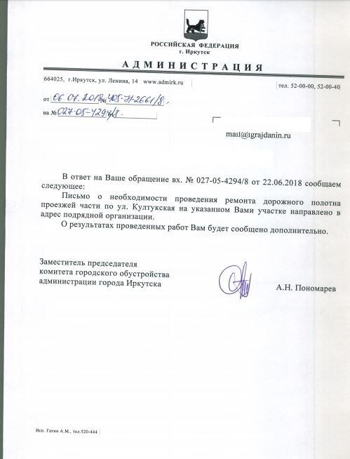айГражданинОтправлено 21.06.2018: "Администрация города Иркутска"