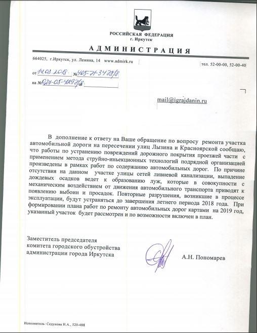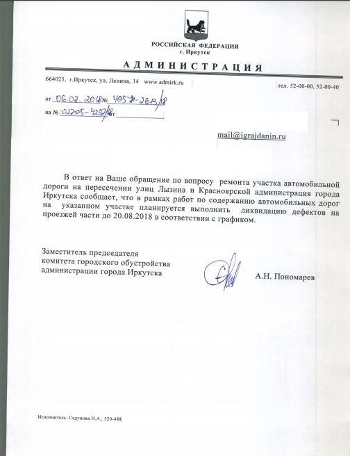 айГражданинОтправлено 21.06.2018: "Администрация города Иркутска"