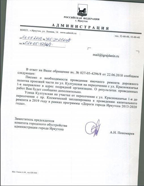 айГражданинОтправлено 21.06.2018: "Администрация города Иркутска"