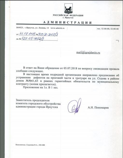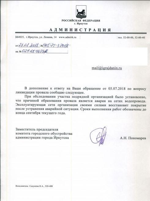 айГражданинОтправлено 05.07.2018: "Администрация города Иркутска"