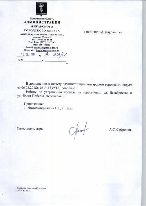 айГражданинОтправлено 05.07.2018: "Администрация города Ангарска Иркутской области"