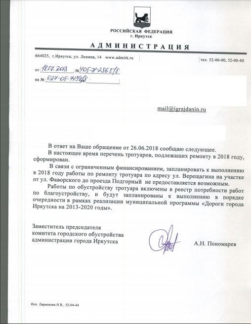 айГражданинОтправлено 25.06.2018: "Администрация города Иркутска"