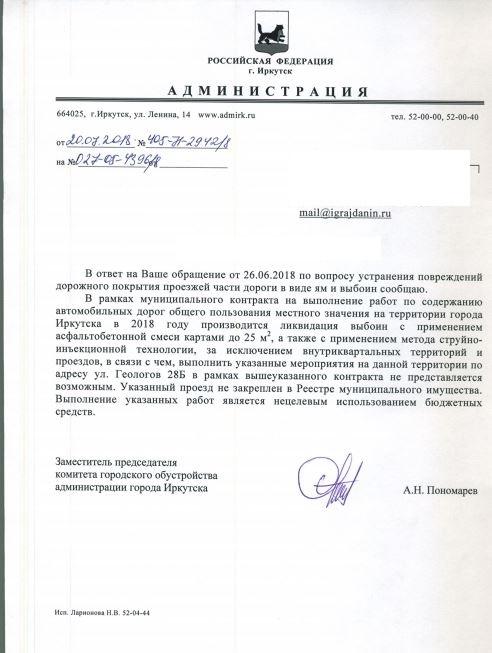 айГражданинОтправлено 25.06.2018: "Администрация города Иркутска"