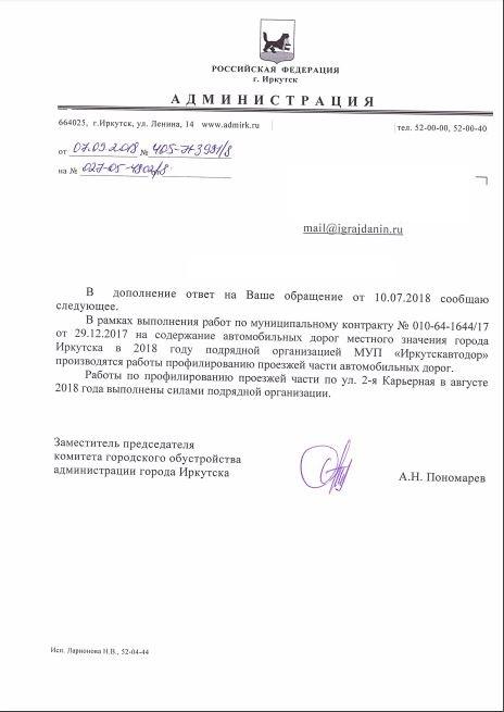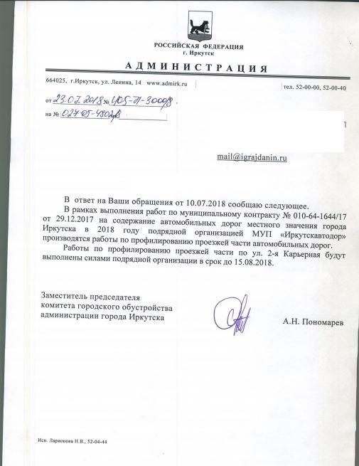 айГражданинОтправлено 10.07.2018: "Администрация города Иркутска"