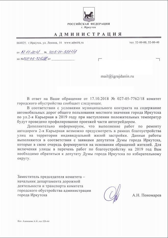 айГражданинОтправлено 16.10.2018: "Администрация города Иркутска"