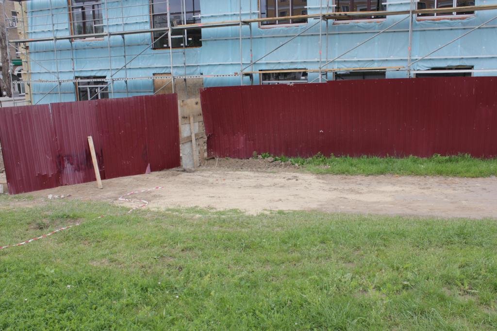 Игнат ЕрмоловНа данный момент строители убрали забор. Тротуар разрушен и засыпан щебнем, на тротуаре появился люк. Все место, где раньше стоял забор засыпан песком, глиной. фото сделаю.