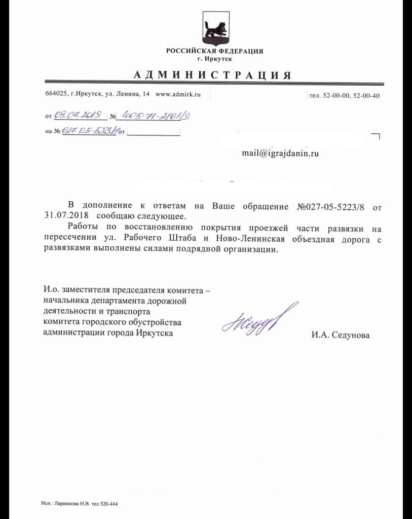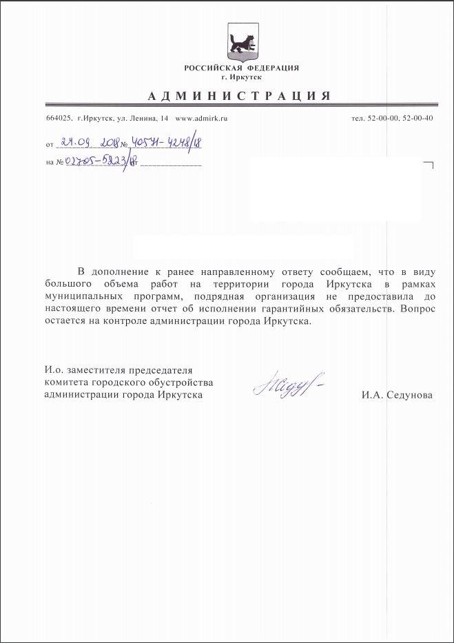 айГражданинОтправлено 30.07.2018: "Администрация города Иркутска"