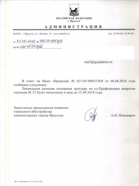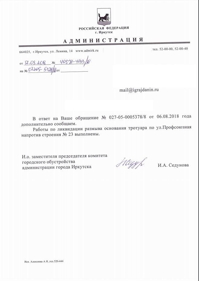 айГражданинОтправлено 03.08.2018: "Администрация города Иркутска"