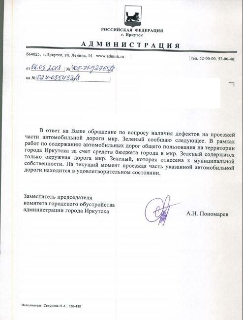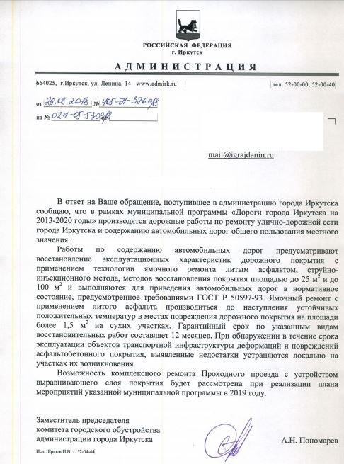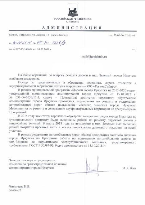 айГражданинОтправлено 09.08.2018: "Администрация города Иркутска"