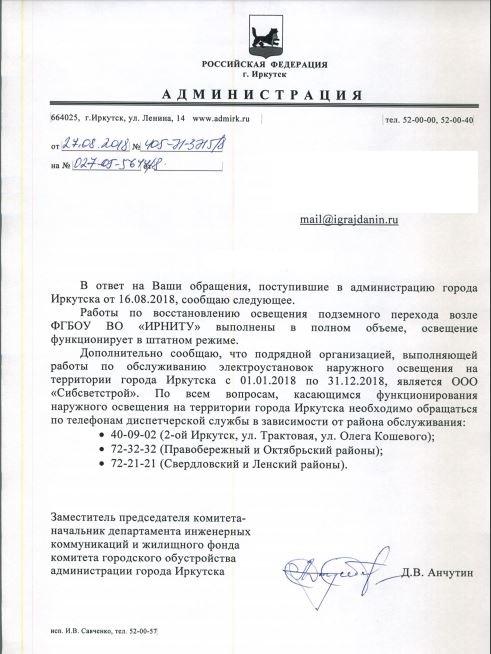Отправлено 14.08.2018: "Администрация города Иркутска"