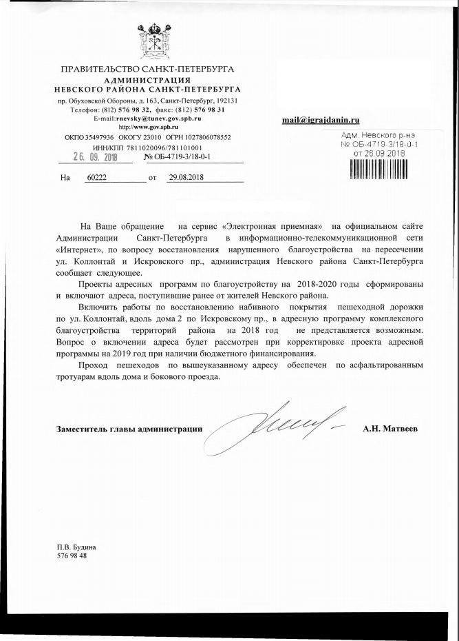 айГражданинОтправлено 29.08.2018: "Администрация Невского района Санкт-Петербурга"