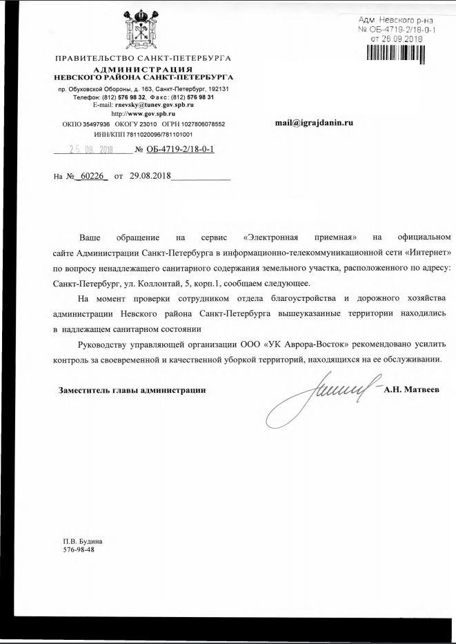 айГражданинОтправлено 29.08.2018: "Администрация Невского района Санкт-Петербурга"