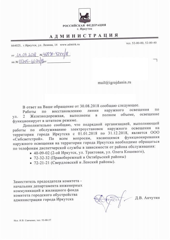 айГражданинОтправлено 30.08.2018: "Администрация города Иркутска"