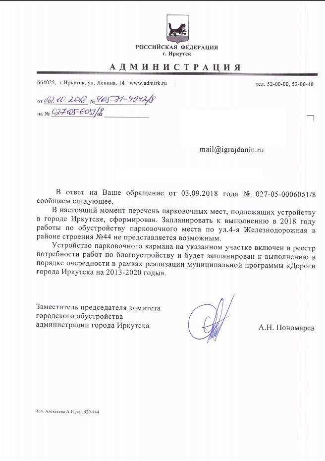 айГражданинОтправлено 31.08.2018: "Администрация города Иркутска"