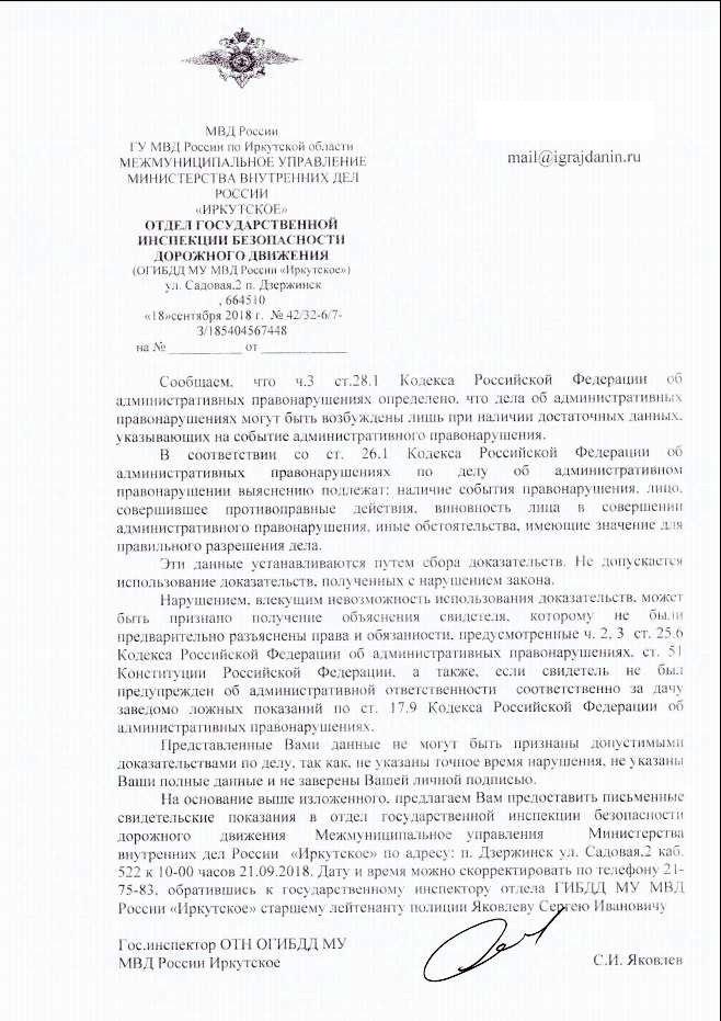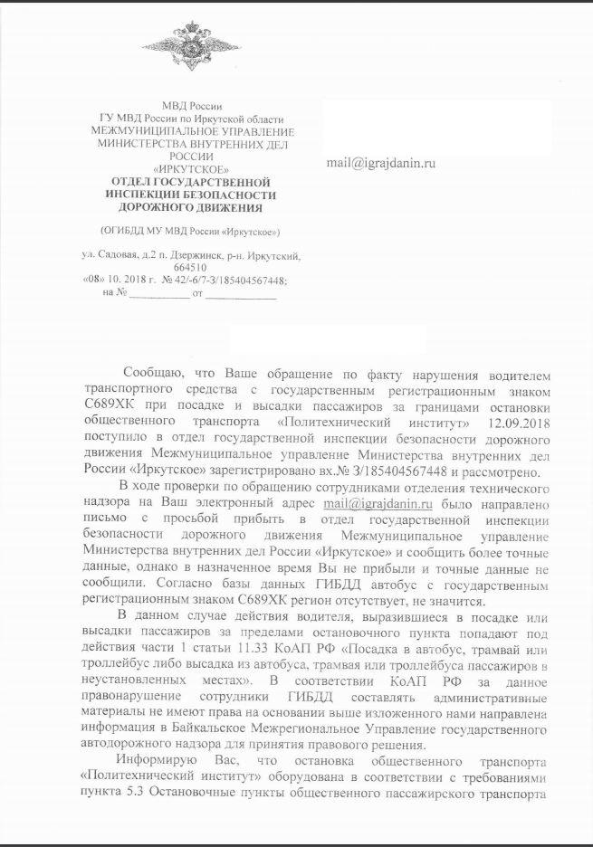 айГражданинОтправлено 11.09.2018: "Управление ГИБДД ГУ МВД России по Иркутской области"