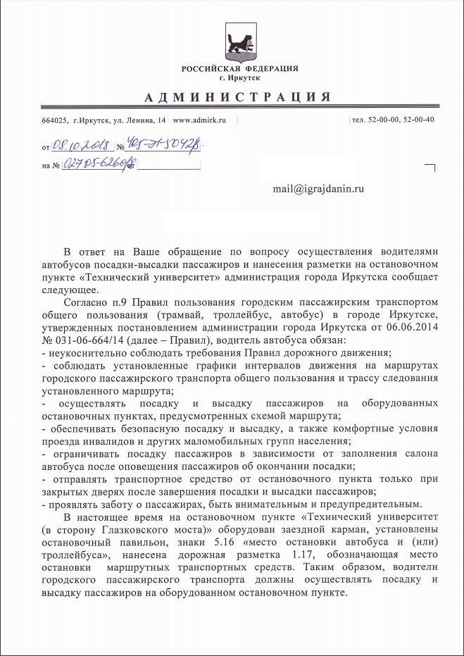 айГражданинОтправлено 11.09.2018: "Администрация города Иркутска"