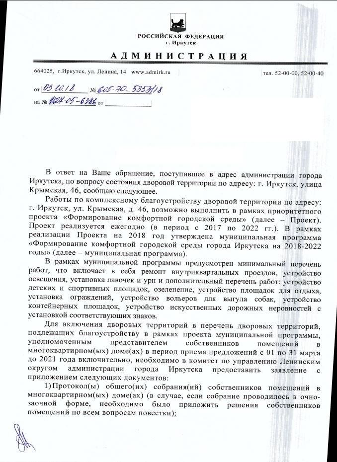 Отправлено 14.09.2018: "Администрация города Иркутска"