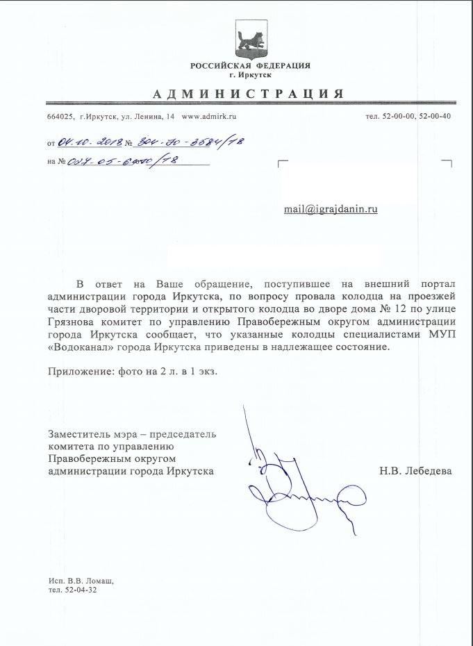 айГражданинОтправлено 17.09.2018: "Администрация города Иркутска"