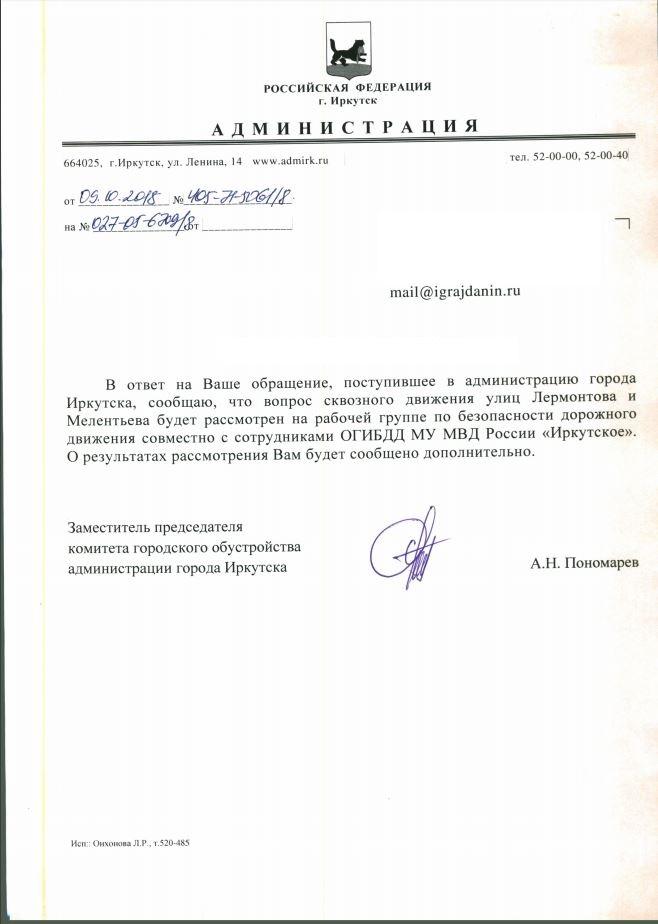 айГражданинОтправлено 24.09.2018: "Администрация города Иркутска"