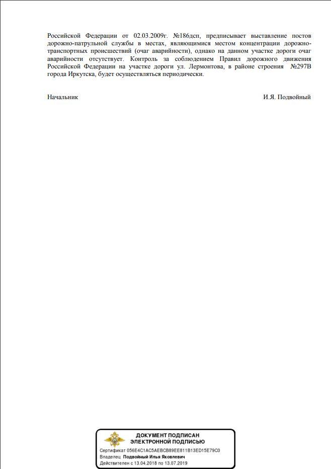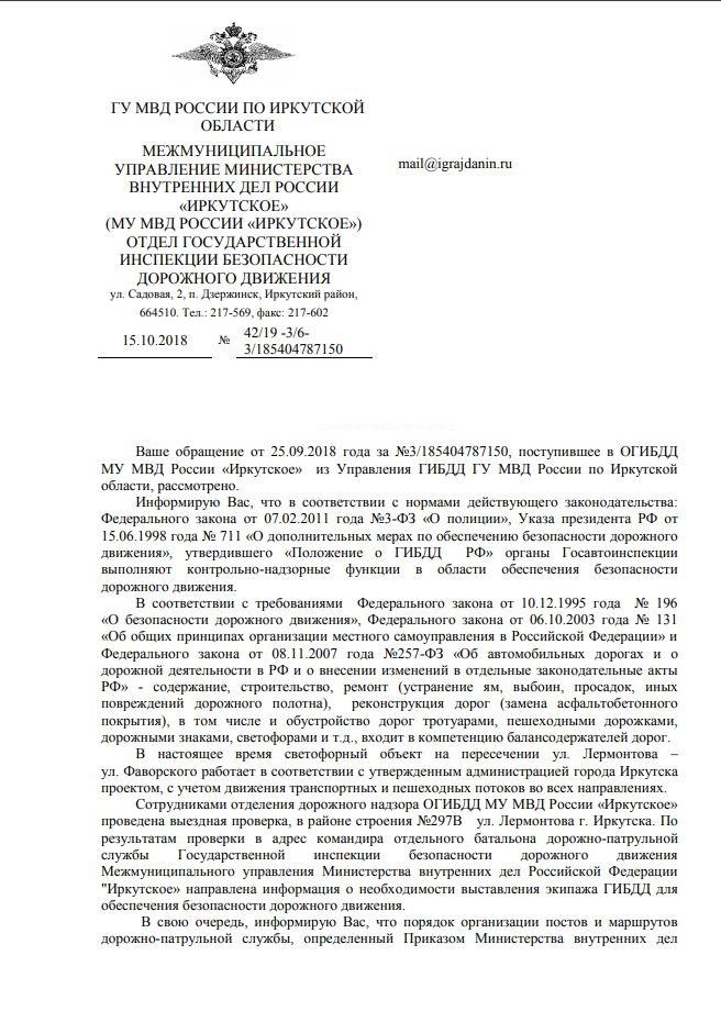 айГражданинОтправлено 24.09.2018: "Управление ГИБДД ГУ МВД России по Иркутской области"
