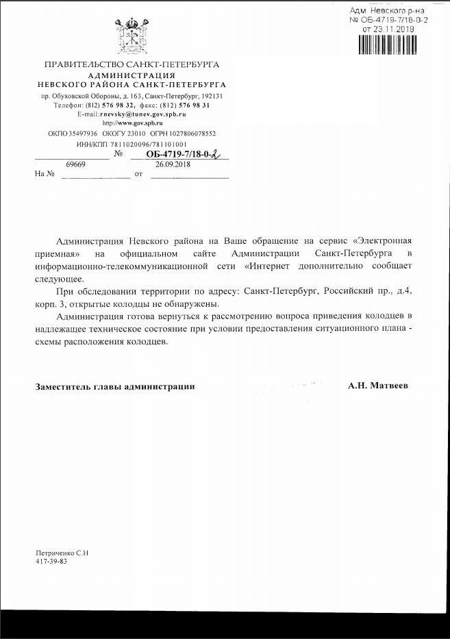 айГражданинОтправлено 26.09.2018: "Администрация Невского района Санкт-Петербурга"