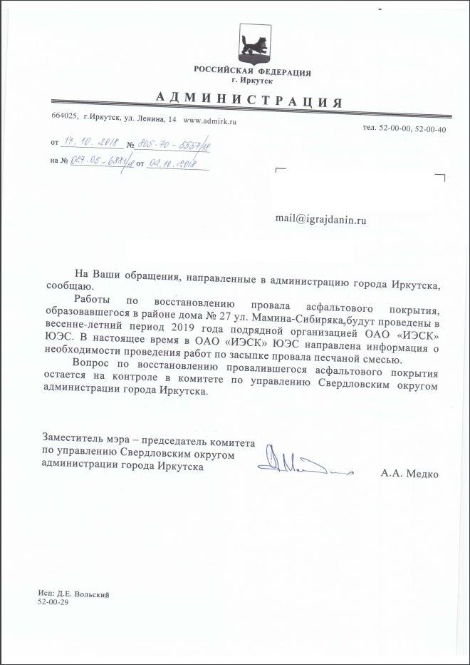 айГражданинОтправлено 01.10.2018: "Администрация города Иркутска"