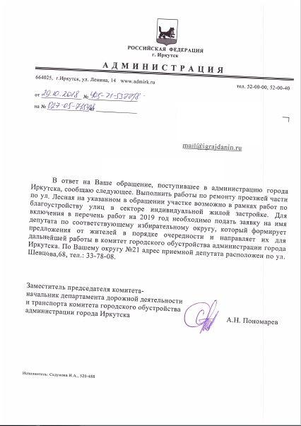 айГражданинОтправлено 11.10.2018: "Администрация города Иркутска"