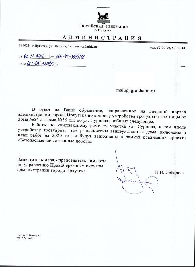 айГражданинОтправлено 15.10.2018: "Администрация города Иркутска"