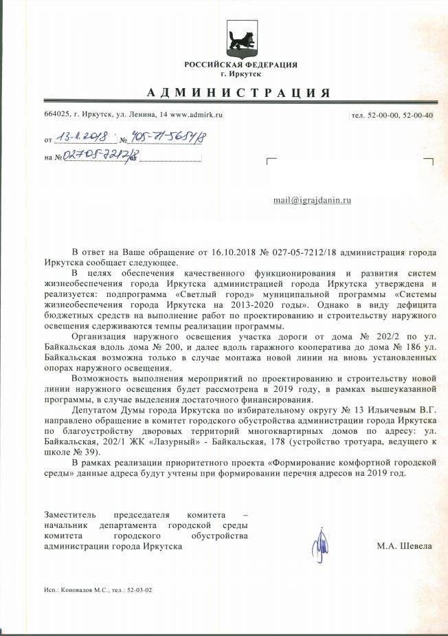 айГражданинОтправлено 15.10.2018: "Администрация города Иркутска"