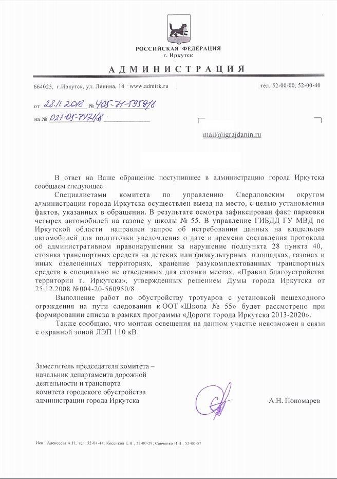 айГражданинОтправлено 19.10.2018: "Администрация города Иркутска"