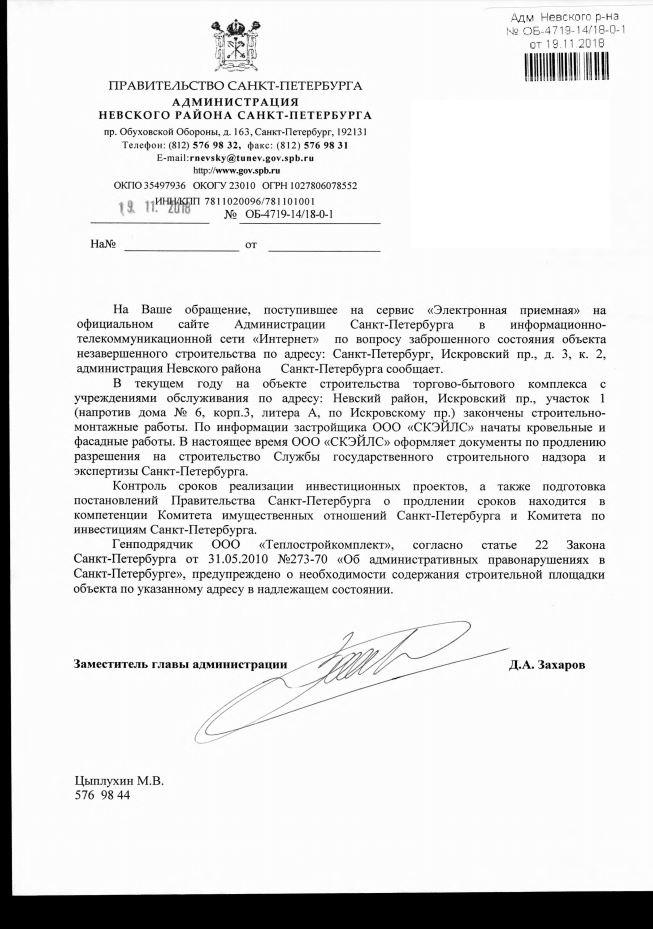 айГражданинОтправлено 22.10.2018: "Администрация Невского района Санкт-Петербурга"