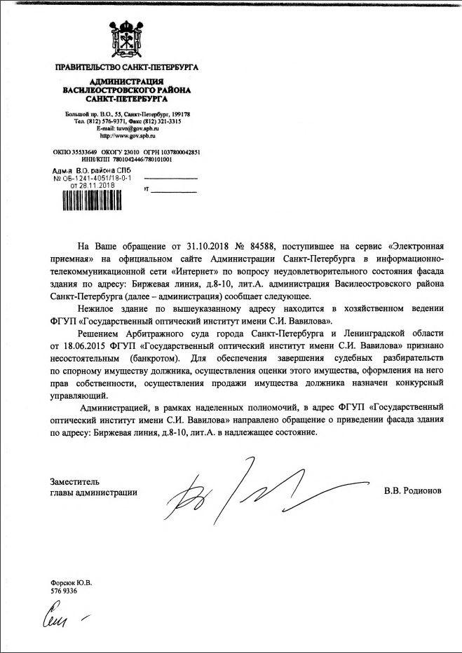 айГражданинОтправлено 31.10.2018: "Администрация Василеостровского района Санкт-Петербурга"