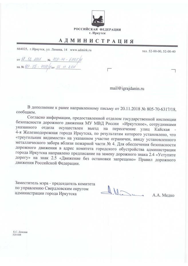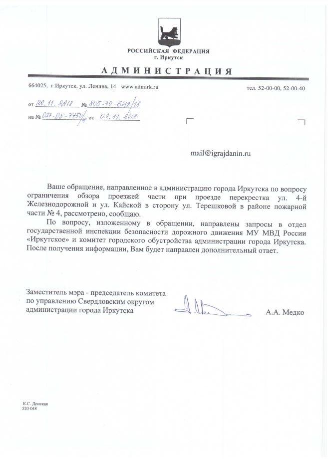 айГражданинОтправлено 31.10.2018: "Администрация города Иркутска"