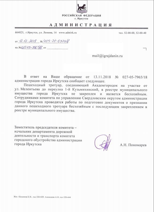 айГражданинОтправлено 10.11.2018: "Администрация города Иркутска"