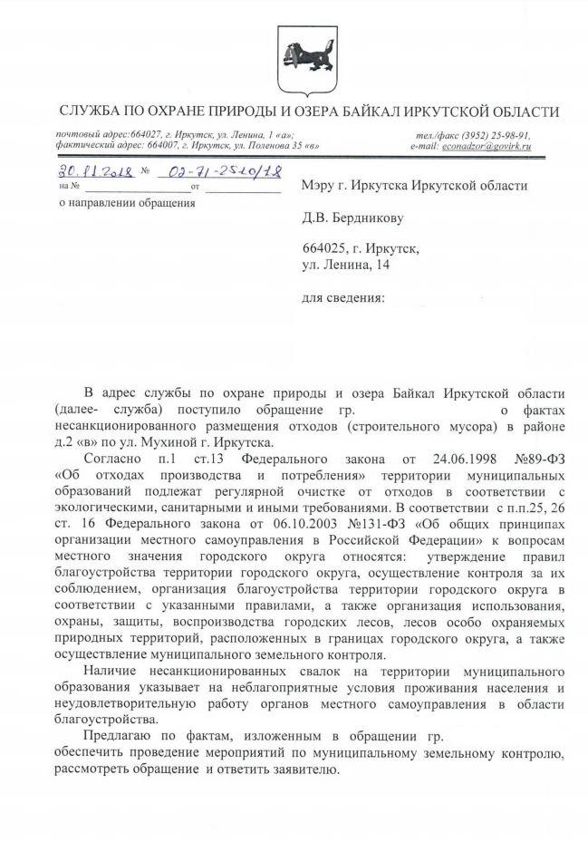 айГражданинОтправлено 23.11.2018: "Министерство природных ресурсов и экологии Иркутской области"