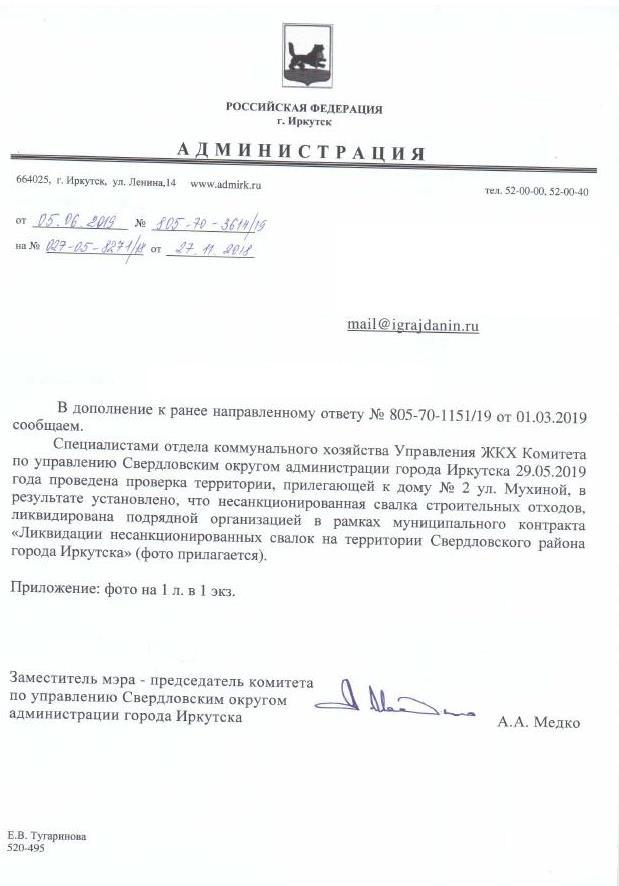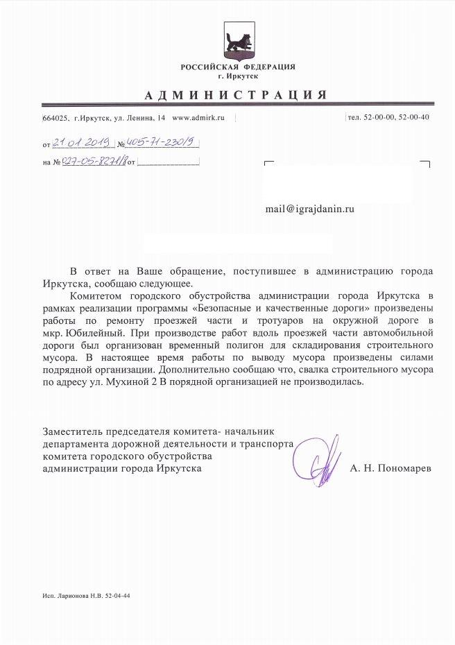айГражданинОтправлено 23.11.2018: "Администрация города Иркутска"