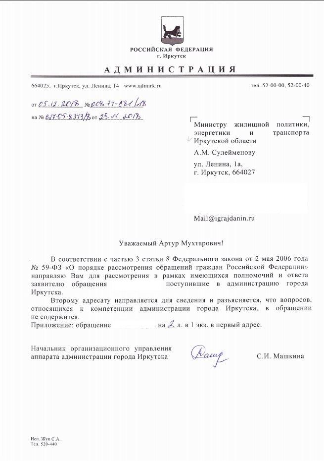 айГражданинОтправлено 26.11.2018: "Администрация города Иркутска"