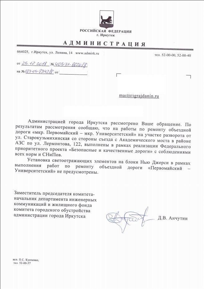 айГражданинОтправлено 26.11.2018: "Администрация города Иркутска"