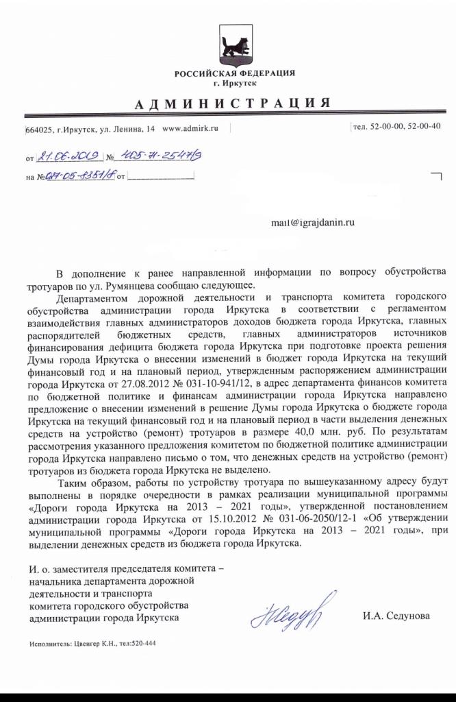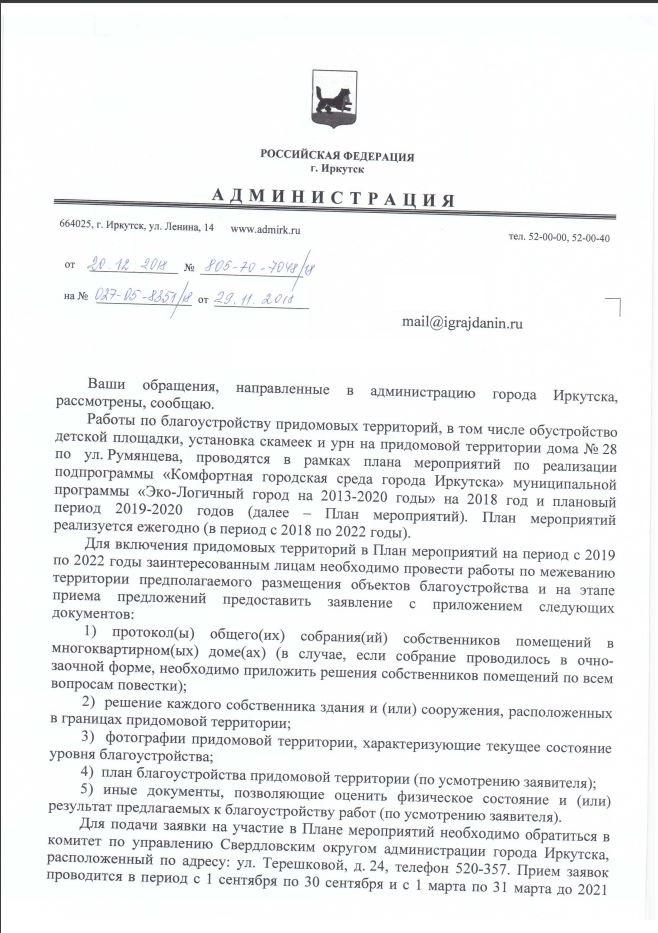 айГражданинОтправлено 27.11.2018: "Администрация города Иркутска"