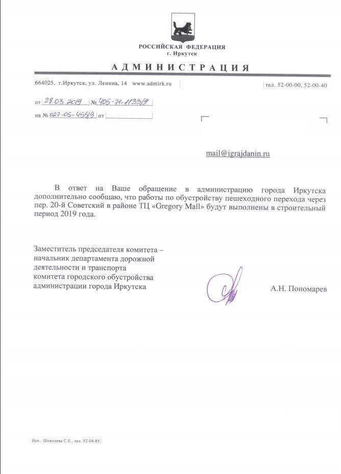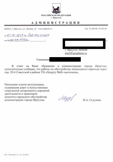 айГражданинОтправлено 30.01.2019: "Администрация города Иркутска"