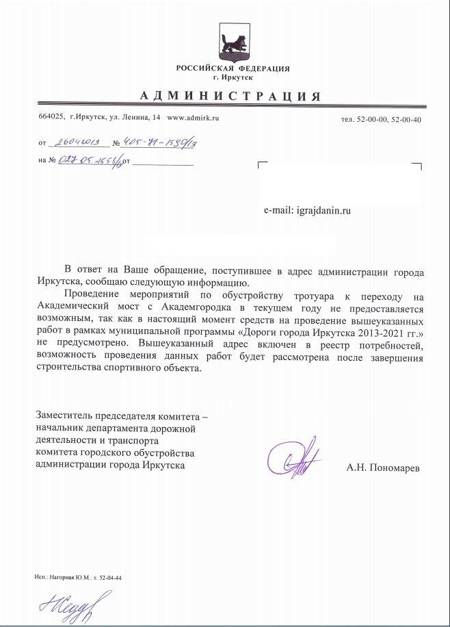 айГражданинОтправлено 26.03.2019: "Администрация города Иркутска"