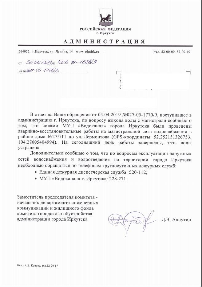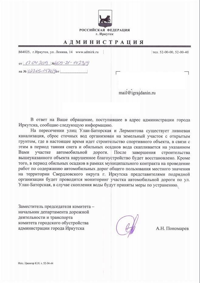 айГражданинОтправлено 01.04.2019: "Администрация города Иркутска"
