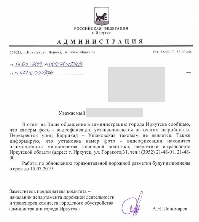 айГражданинОтправлено 23.04.2019: "Администрация города Иркутска"
