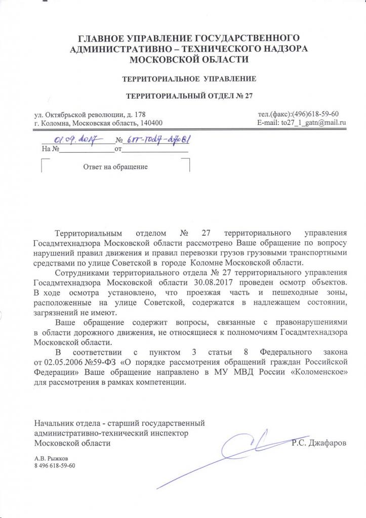 айГражданинОтправлено 29.08.2017: "Государственный административно-технический надзор МО, Территориальный отдел № 27 "
