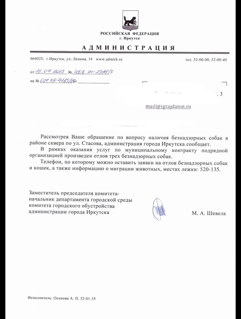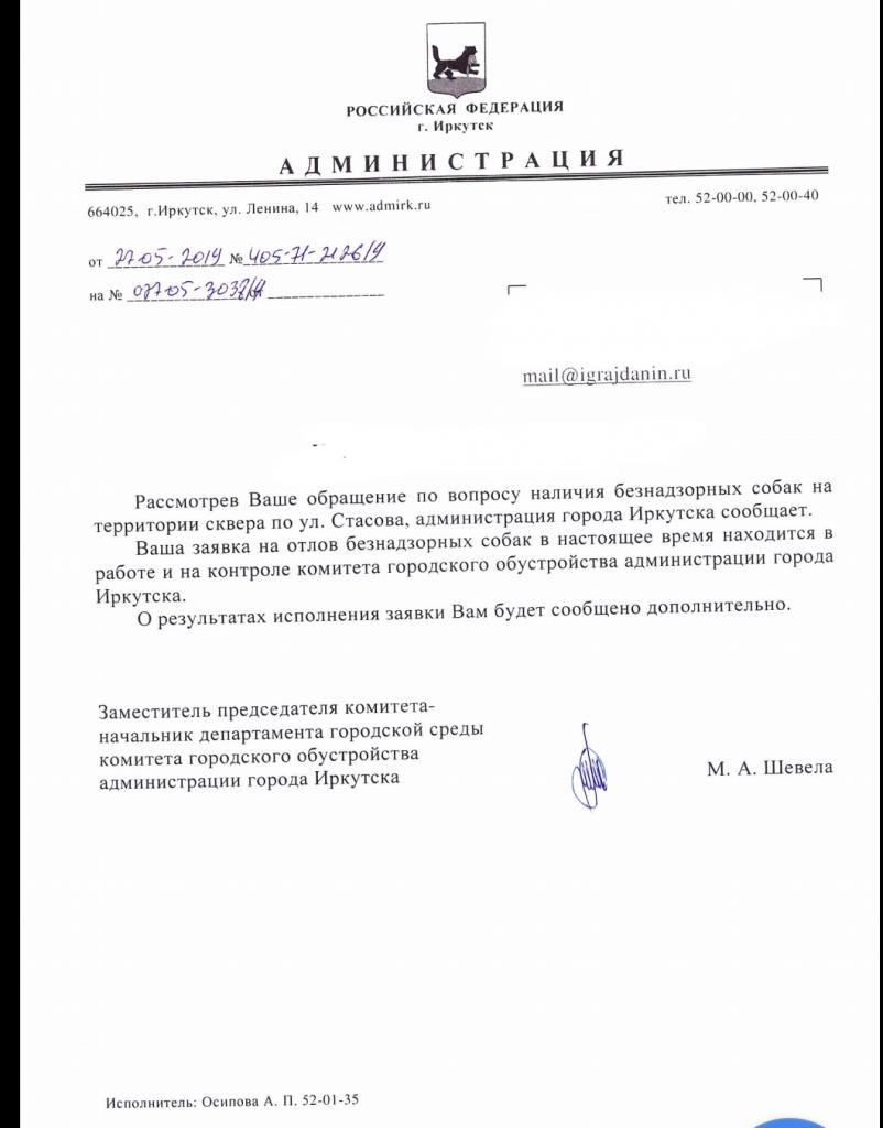 айГражданинОтправлено 15.05.2019: "Администрация города Иркутска"