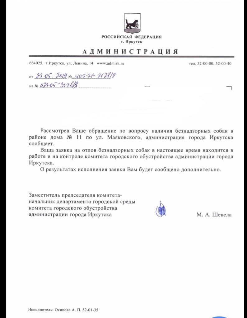 айГражданинОтправлено 15.05.2019: "Администрация города Иркутска"