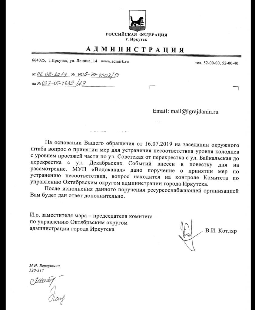 айГражданинОтправлено 15.07.2019: "Администрация города Иркутска"