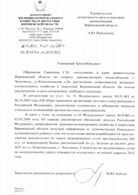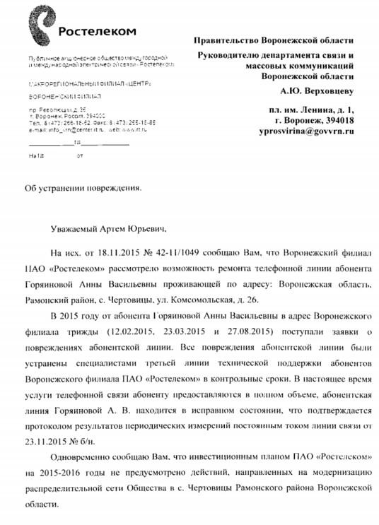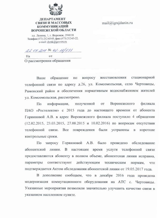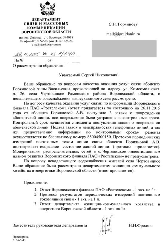 айГражданинПоступил ответ из Департамента связи и массовых коммуникаций Воронежской области.