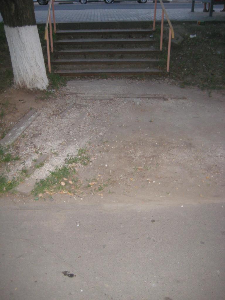 1) Заасфальтировать спуск у остановки. см первое фото.